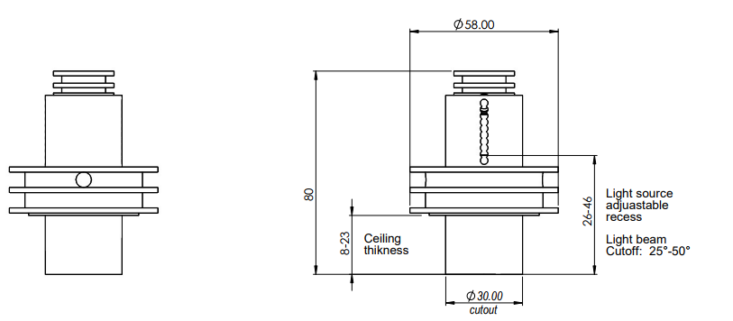 A frameless design, one spot one lens luminaire for interior, with different light beam output adjustable on site without any lens change, thanks to a specific key tool. A very recessed LED allows a glare-free effect. Adjustable according to ceiling height, this luminaire is removable from the front for easy inspection and maintainance, avoiding any ceiling panels disassembling. Available in various finishes, customisable on demand.