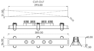 A contemporary minimal frame design, allowing an easy and fast springs mounting and maintenance. It is a 4 modules recessed fixed downlight for interior. High quality of light performance .A perfect luminaire for luxury areas, it enhances interior details and style.